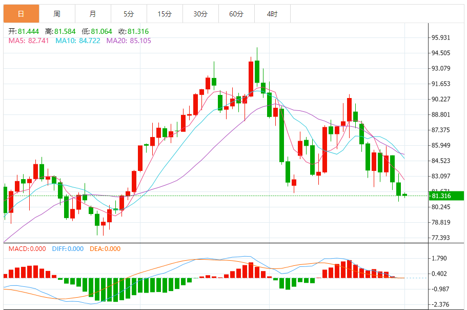 综合来看,原油日内短期操作思路上建议上方短期重点关注83.0-84.0一线阻力,下方短期关注80.0-79.0一线支撑。