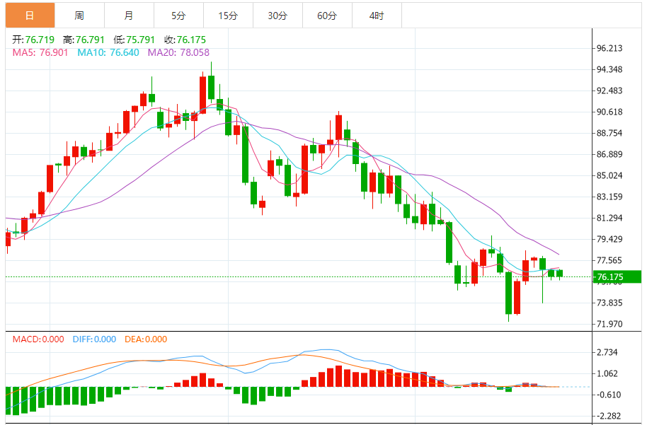 周四(11月23日),原油价格交投于76.16美元/盎司附近,昨日OPEC+产油国意外推迟减产会议,引发对全球原油供应的质疑,油价在动荡的交易中下跌近1%。