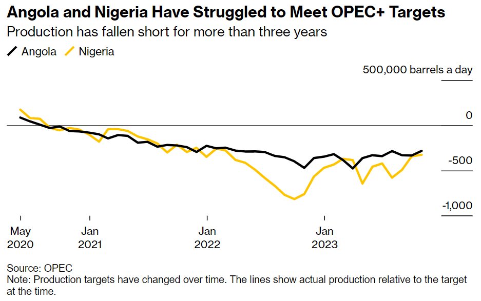 近年来,安哥拉和尼日利亚由于投资不足或政局不稳,产能不断下降,欧佩克+正在强行降低这两个国家的产量上限。这两个国家正在反击。