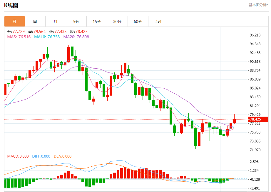 支撑位:77.50 77.00 76.30