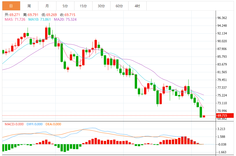 原油昨日低位震荡,盘整也出现反弹动作,但又未能站上74上方,最终低点又跌回至70附近,日线再收得一阴。从昨日原油运行节奏以及日线形态结构来看,昨日原油已经对下方70支撑进行测试和确认,此处有支撑,但是强度不足,而昨日行情也有回弹,但是动能不大,导致这种尴尬的局面主要因素还是在于市场对基本面无法带来利多的担忧,未来美油即便有回弹,如果只是依托技术力量,可能很难形成有效且持久的反弹。