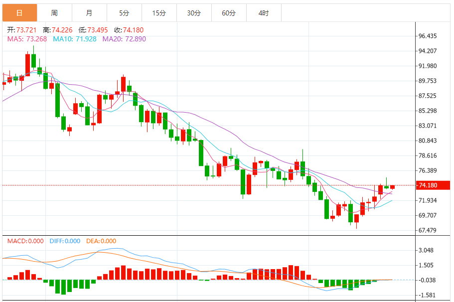 在美国石油产量创下历史新高后,油价回吐部分涨幅,布伦特原油受阻于80美元大关,WTI原油跌至74美元附近。