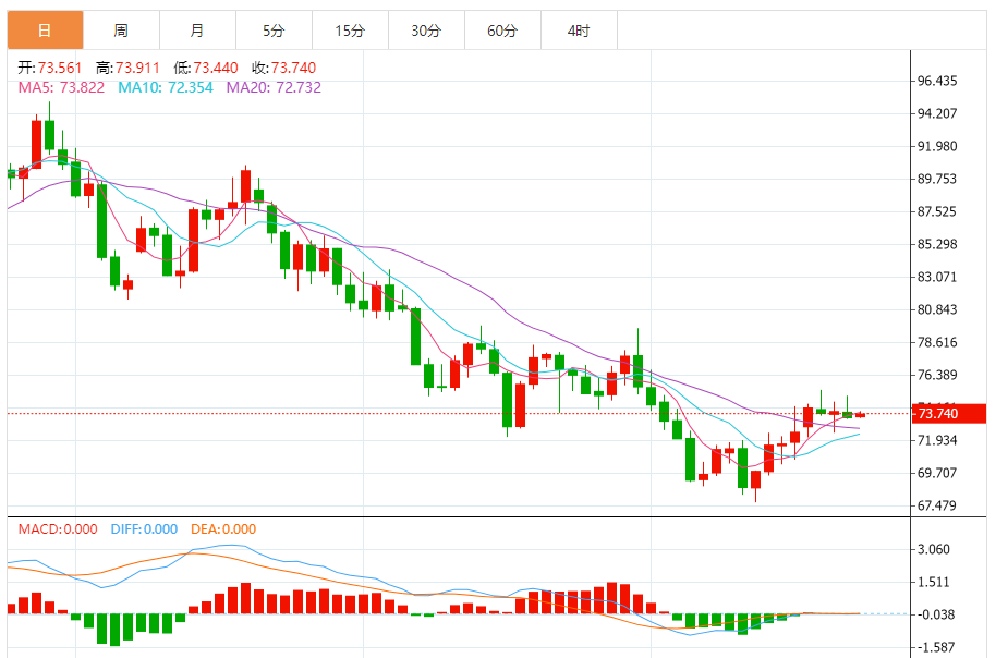 以盘中形态临盘为准,综合来看,原油短期操作思路上建议上方短期关注75.0-75.5一线阻力,下方短期关注72.0-71.5一线支撑。