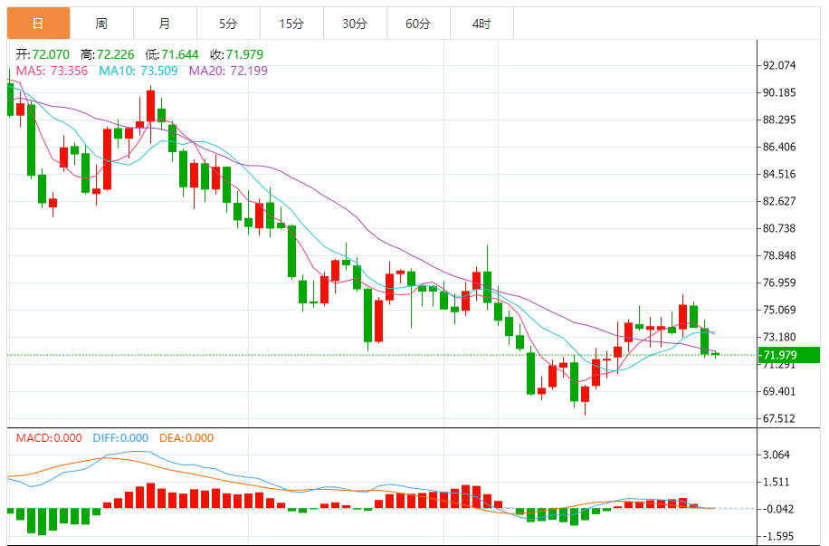 今天的预期交易区间:在70.00支撑和73.00阻力之间。