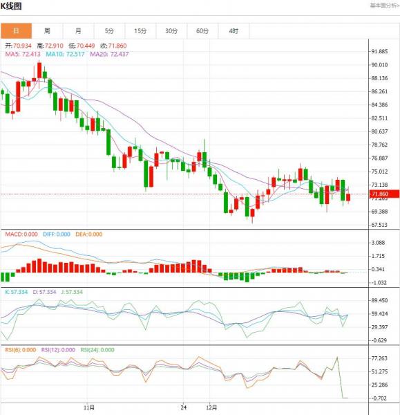 原油昨日中阴线回落收低,将上个星期五(1月5日)的反弹空间尽数回吐,日线上布林带收口,是蓄势下破还是盘底回升仍需时间继续观察;4小时图从74.20一线承压回落,重新逼近69.20起涨低点,结构来回洗盘拉锯,并看不出明显的单边,只是昨日收低,让今日短线相对会偏弱些。