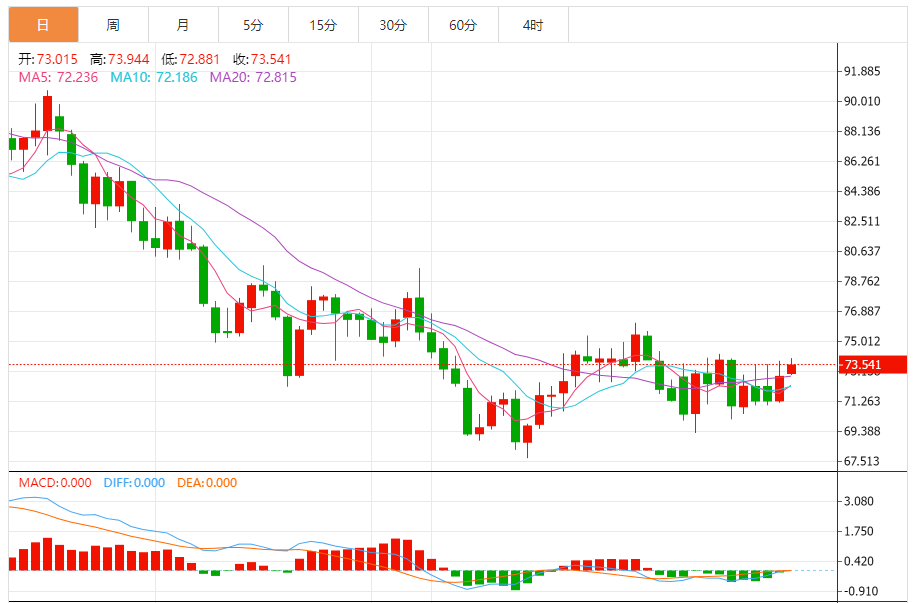 综合来看,原油日内操作思路上建议上方短期关注74.0-75.0一线阻力,下方短期关注71.0-70.0一线支撑。