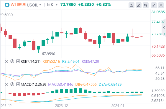 美国原油在2024年的盘中交易很艰难,在74.00美元至70.50美元之间艰难地循环,因为近期价格走势接近72.50美元附近的200小时SMA。日线图显示,原油在200日均线南侧78.00美元处盘整,50日均线下降形成技术上限,并对近期价格从74.00美元开始施加下行压力。