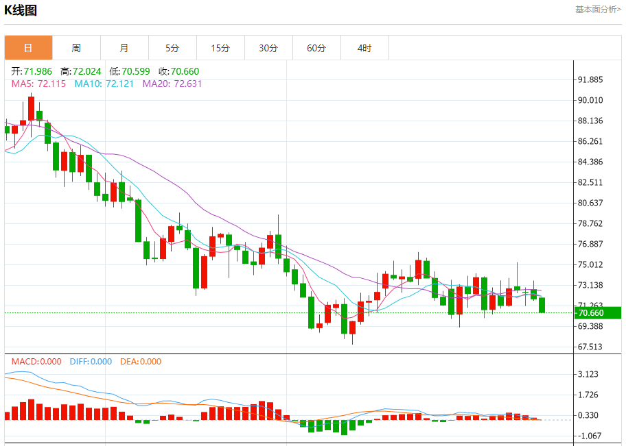 技术点评:跌破71.60,为空头信号,向下的目标将会是70.10。