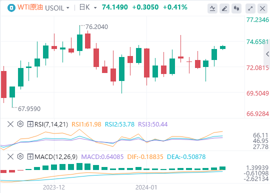 考虑到这些不同的因素,石油市场可能会保持波动。中东地区持续的紧张局势和中美关系的演变动态对于决定市场方向至关重要。如果这些领域没有大幅上涨,预计WTI将维持目前70-76美元的价格区间。建议交易者对这些发展保持警惕,因为它们是了解市场短期走势的关键。