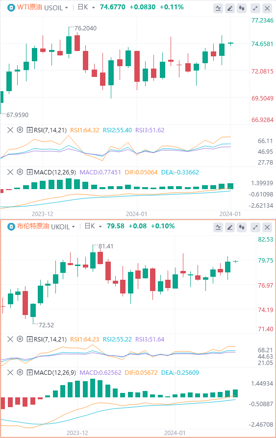①摩根大通认为,尽管红海遭受了袭击,但目前油价不存在地缘政治风险溢价。因为运输中断问题很容易解决;油轮绕道仅使油价增长2美元/桶;海湾阿拉伯国家的石油运输主要依赖于陆路管道。