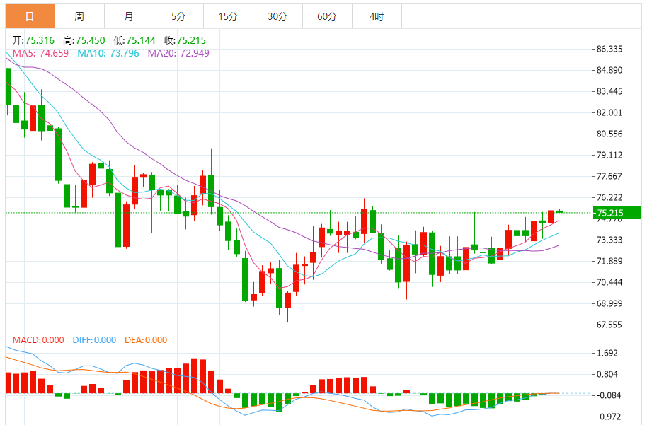 周四(1月25日),美原油价格交投于75.20美元/桶附近,跌幅为0.17%。周三油价继续震荡走高,盘中波动仍然较大,但再整体利多氛围下,油价重心继续抬升,盘中一度突破了关键整数关口。