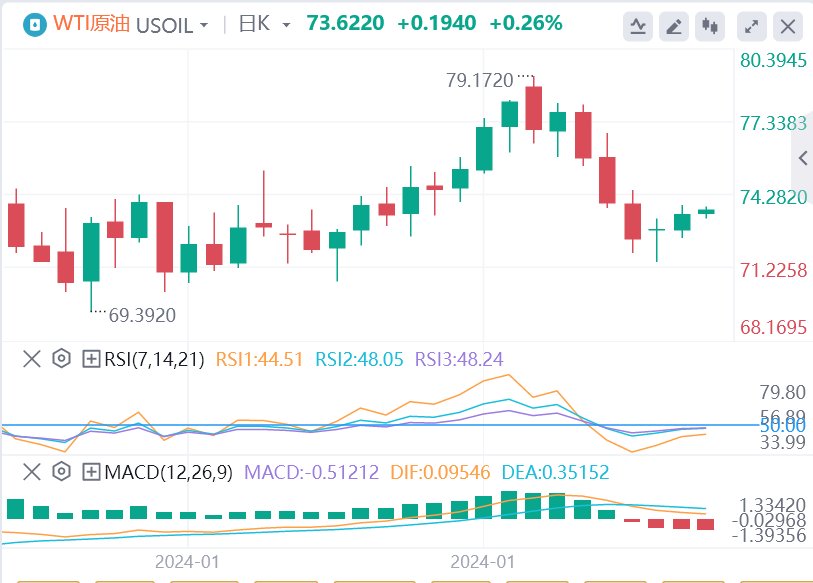 周三,布伦特原油和西德克萨斯中质原油(WTI)期货走高,可能连续第三天上涨。这一变动主要归因于美国能源部的最新数据显示,2024年石油产量增长低于预期,这减少了对供应过剩的担忧。