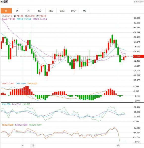上方短期关注73.7-75一线阻力;