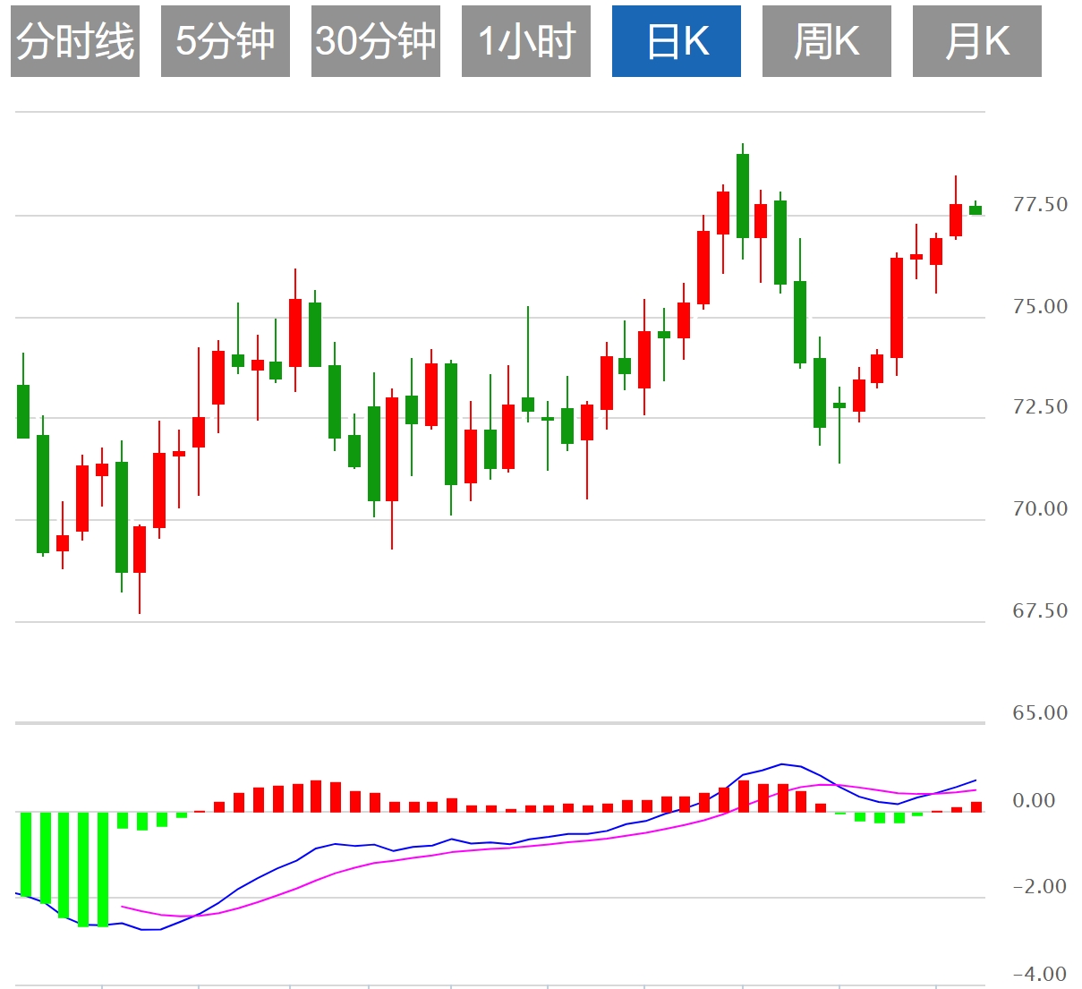WTI油价近期走势依然坚定看涨,处在74.72美元附近的200小时简单移动均线(SMA)远上方。 自从上周突破中线技术阻力以来,WTI油价维持处在200小时均线上方,近期技术阻力位于周二未能突破的78.00美元关口。