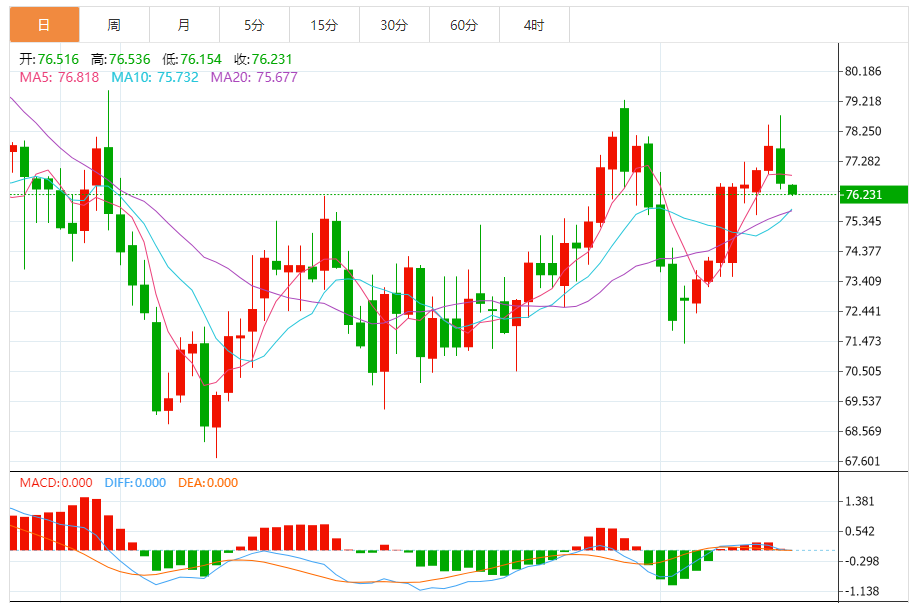原油4小时图一波连阳小碎阳之后稍有停顿,并不是强势放量上涨,短线结构从底部回升以来,还会伴随蓄势整理,当然结构还是倾向于向上的,短线操作保持回调低多,就是看是整理后强势上涨还是伴随空间回踩后启稳上涨,结合形态临盘安排,强弱临界点在75.50一线,此位守住看强势,下破则进行回踩确认。时间点还是放到欧盘后,亚盘的动能不强。综合来看,原油今日操作思路上建议以反弹高空为主,回踩低多为辅,上方短期关注77.2-77.7一线阻力,下方短期关注75.0-74.5一线支撑。