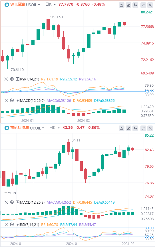 上周五,国际油价继续走高,中东紧张局势加剧掩盖了日益弱化的降息希望和今年黯淡的需求前景。截至目前,WTI原油报价77.78美元,Brent原油报价82.26美元。