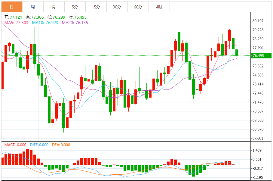 周三(2月21日),油价重回跌势,现跌幅已逐步收窄。市场担心红海航运遭到袭击,同时预期美国开始降息的时间将比预期要晚。WTI原油期货盘中报76.44美元每桶,跌幅0.97%。布伦特原油期货盘中报81.18美元每桶,跌幅0.32%。