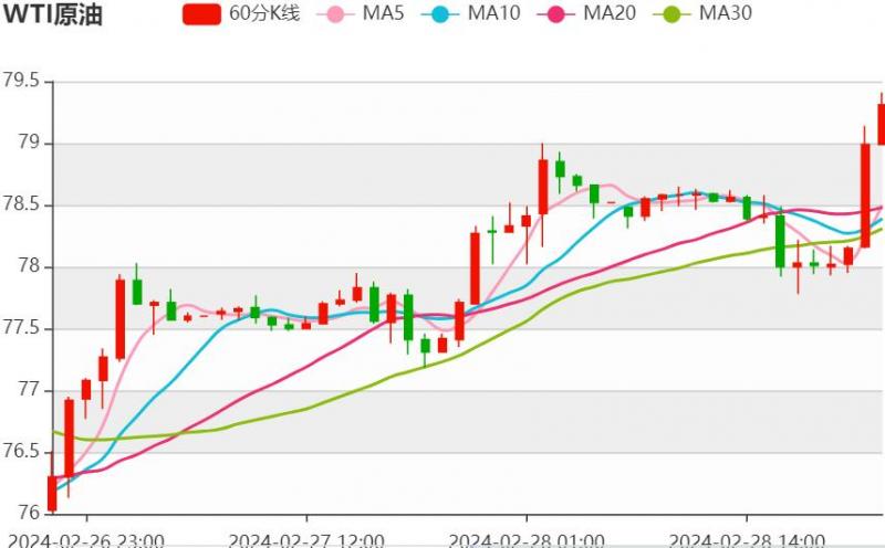 原油周二继续震荡上行,日线收阳于78.5,从日线看油价还将继续上涨,4小时图在中轨附近整理启稳后放量摸高上轨,目前刚好点到上轨处。短线看能否直接突破此前高点79.30.突破才能打开空间,同时顶开上轨,否则还会陷入在高点之下整理蓄势。