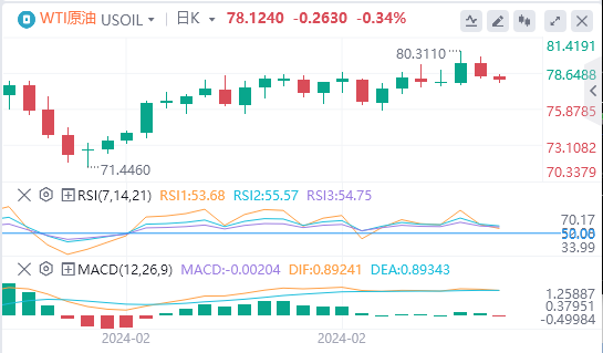 原油最近跌至78.45美元,下跌0.30%,暗示潜在的波动。78.86美元的枢轴点现在是一个关键节点;超过这一数字可能会使天平向看涨情绪倾斜。阻力位位于80.36美元、81.06美元和81.80美元,对上行势头构成挑战。