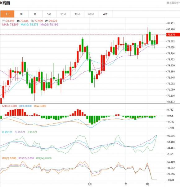 上方短期关注79.5-80.0一线阻力