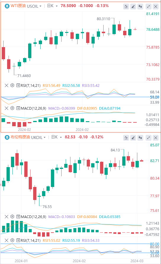 周四亚市,WTI油价走低至78.50美元附近。然而,截至3月1日当周美国石油库存增幅低于预期,周三原油价格大涨截至目前,WTI原油报价78.50美元,Brent原油报价82.53美元。