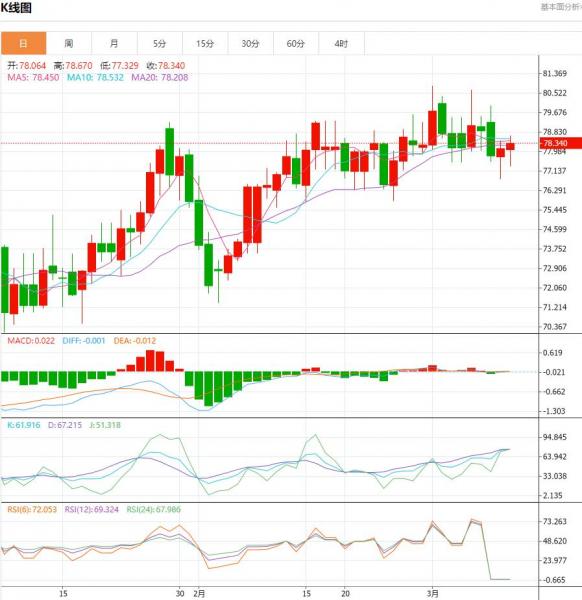 上方短期关注79.0-79.5一线阻力