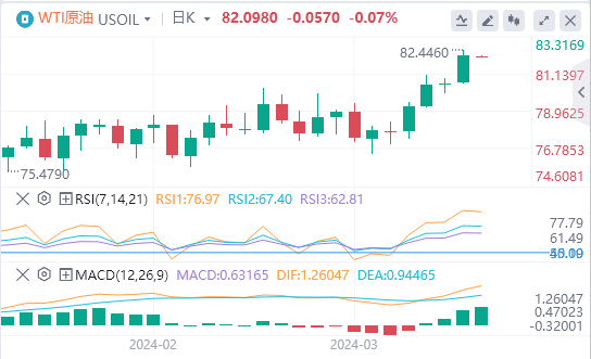 WTI油价周一攀升至每桶82.00美元以上,延续了近期看涨势头。美国原油测试了11月份以来的最高桶价,创下82.46美元的16周新高,拉开了新交易周的序幕。
