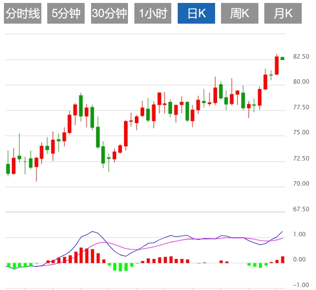 在上方,价格面临82.80美元水平附近的阻力。下一个主要阻力位于83.00美元区域,如果上破该水平,价格可能会加速上涨。如果涨势继续,价格可能测试85.00美元的阻力位。