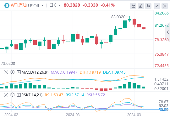 美国国务卿安东尼-布林肯表示,目前正在进行的旨在实现加沙停火和释放人质的谈判正在缩小差距,这缓解市场担忧中东地区原油供应中断。美国经济前景乐观,美元买盘跟进,这些因素都对以美元计价的大宗商品(包括原油价格)构成了下行压力。不过,全球供应紧缩的担忧似乎缓解WTI油价下跌压力。