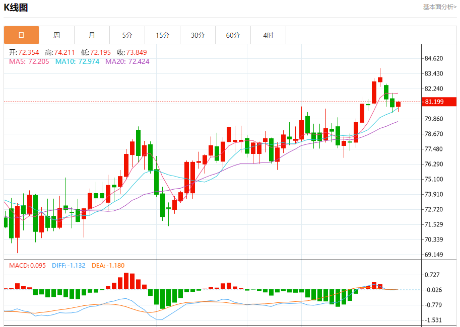 技术点评:在80.70之上,为多头信号,向上的目标位为81.50。