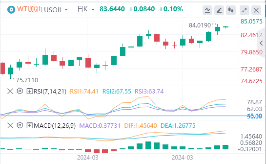 IG集团市场分析师TonySycamore表示,中国和关国的制造业PMI强于预期,市场认为这是石油需求上升的指标,从而提振了油价。如果WTI原油期货突破84.00美元/桶的技术阻力位,可能会上涨到90美元区间中部左右(95美元),上一次WTI即月合约达到这—水平是在2022年8月。