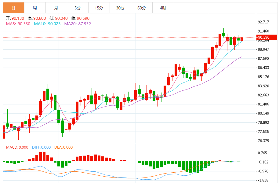 周五(4月12日),布伦特原油价格交投于90.570美元/桶附近,涨幅为0.94%。OPEC周四(4月11日)表示,预计夏季全球石油需求强劲,因为运输燃料消费量将全面上升,且各地区夏季和假日旅游将增加。该组织认为“夏季几个月的石油需求前景强劲”。