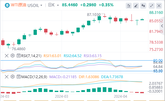 国际原油整体上先跌后涨,分析师认为油价已经提前消化一些地缘政治风险。WTI原油盘中跌近2%后反弹,截至目前,WTI原油报价85.44美元,Brent原油报价90.07美元。