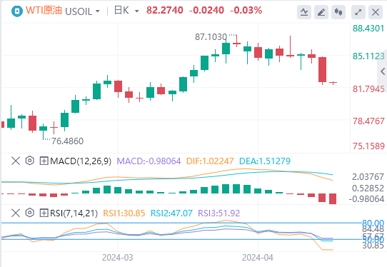 中东局势升级的风险目前似乎有限。然而,石油交易商将密切关注以色列及其反应,尤其是在美国总统乔-拜登敦促克制和伊朗表示不打算继续打击之后。中东地区更广泛的冲突可能会扰乱石油供应,抬高WTI油价。