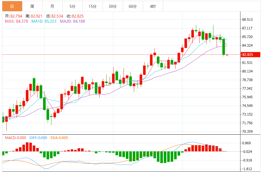 周四(4月18日),美原油价格交投于82.811美元/桶附近,跌幅为0.04%。周三油价从日内高点暴跌3美元,过去近2周时间油价都是走出明显抗跌特征的震荡缓慢调整节奏,突然的急速下挫让不少投资者措手不及,尤其是对国内前期较为乐观的成油品市场参与者来说,带来明显冲击。
