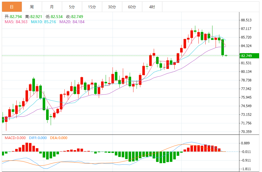 今天的预期交易范围:在81.00美元支撑位和84.00美元阻力位之间。
