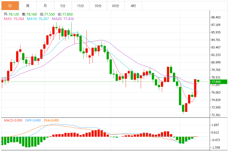 预期交易范围:在76.00美元支撑位和79.40美元阻力位之间。
