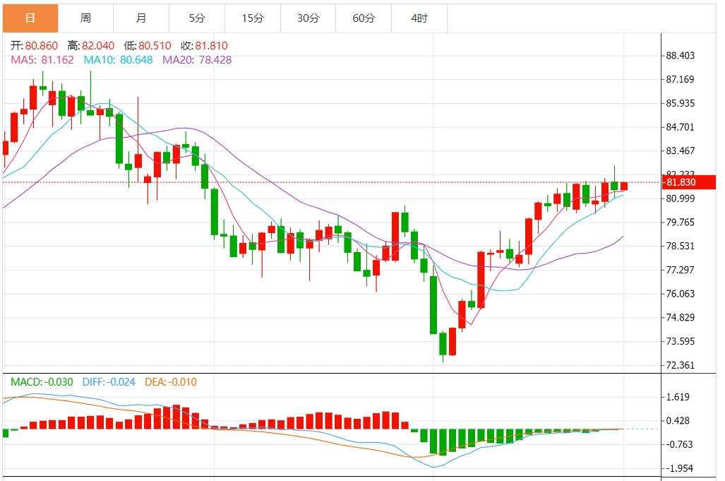 WTI美国原油周五一度创下八周新高82.31美元,然后在本周最后一个交易日跌至下行图表区域,结束了本周与81.00美元关口的斗争。近期图表的波动使WTI在每桶81.50美元上方的供应区域的强劲下行压力下波动。