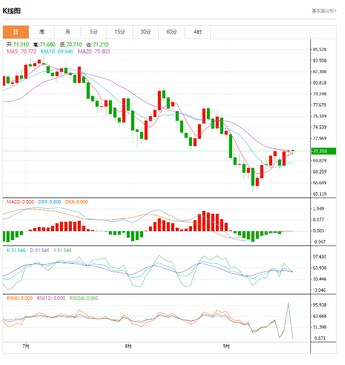 国际油价企稳69关口后延续多空窄幅震荡整理,周线连续二周录得上涨。日线级别,目前油价企稳5日均线上方窄幅震荡运行修复前期大跌远期均线。4小时图依托中轨走出一波持续性的反弹,上方接近下行趋势线的阻力,面临关键选择点。今日油价上方关注72关口压力,日内保持多空宽幅震荡运行节奏,耐心等待关键点位进场。