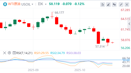 由于国际能源署(IEA)警告2026年石油供应过剩,原油价格下跌。截至目前,WTI原油报价58.11美元,Brent原油报价61.93美元。