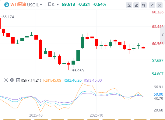 WTI在近两周内在60.00美元附近窄幅区间内交易。油价在20日指数移动平均线(EMA)附近保持粘性,表明横盘趋势。