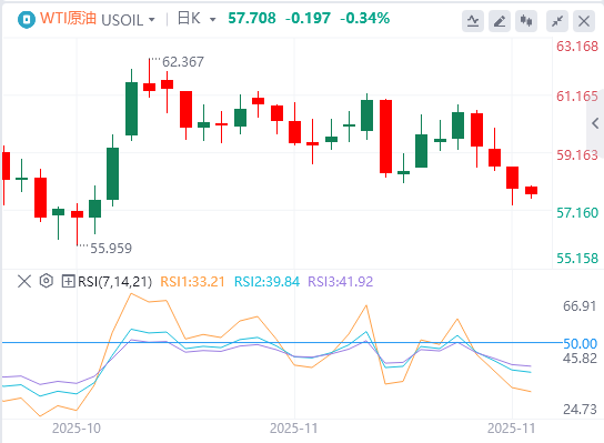 较低的利率通常会对美元(USD)造成压力,并推高WTI价格,因为这使美元计价商品对外国买家更便宜。根据芝加哥商品交易所FedWatch工具,美联储基金期货目前预测12月美联储会议降息25个基点(bps)的概率接近74%,高于一周前市场定价的40%。
