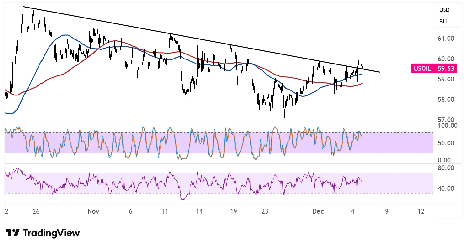 WTI原油可能会从库存报告和地缘政治发展中汲取信号,因为主要产油区紧张局势升级可能重新引发供应担忧。此外,宽松货币政策带来的需求增强预期,短期内可能进一步支撑原油价格。