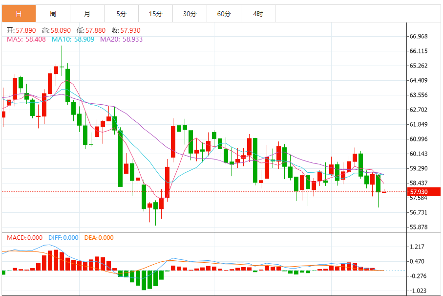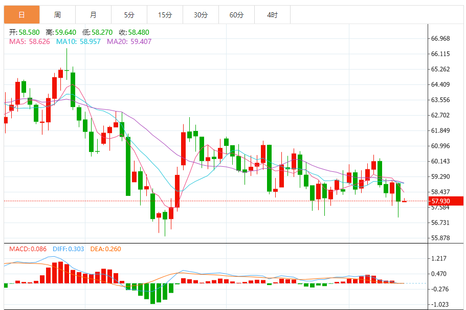 周五(12月12日),美原油价格交投于57.910美元/桶附近,涨幅为0.54%。