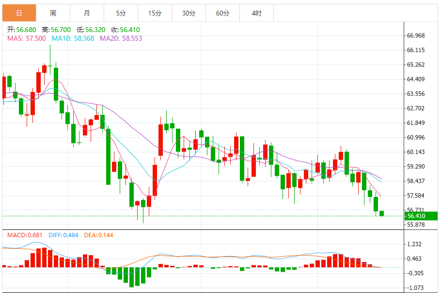 国际原油期货连续收跌,周二继续走低,交投于56.67美元/桶附近,市场核心逻辑仍集中在供应过剩预期。