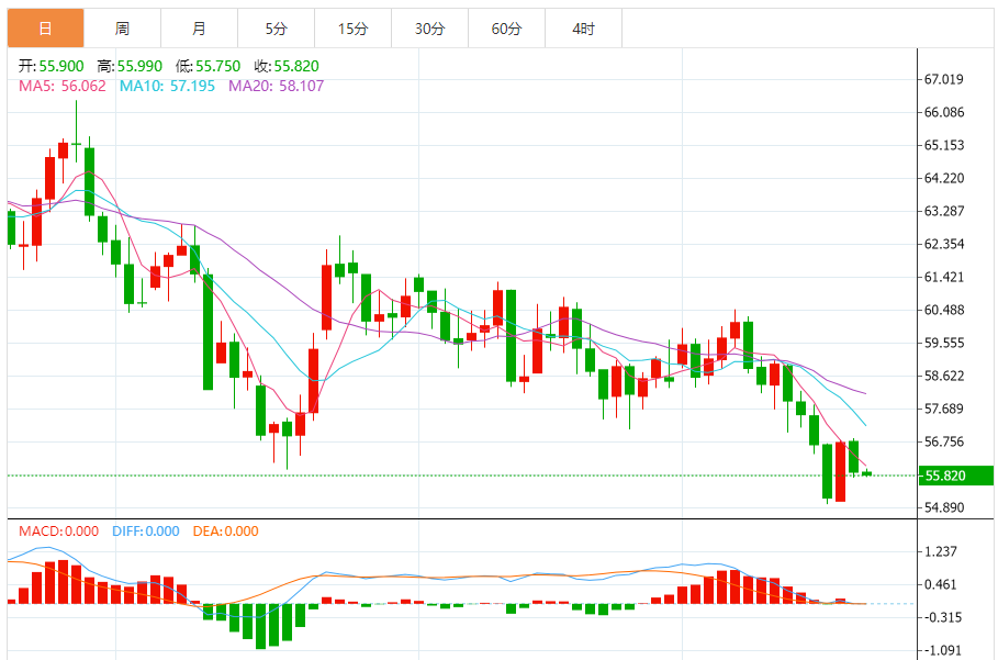 周五(12月19日),美原油价格交投于55.800美元/桶附近,跌幅为0.34%。