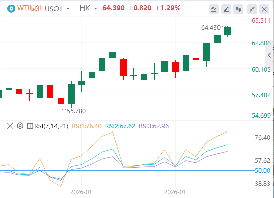 随着原油库存下降和伊朗地缘政治紧张局势升级,WTI价格升至九月底以来的最高点。截至目前,WTI原油报价64.39美元,Brent原油报价68.29美元。