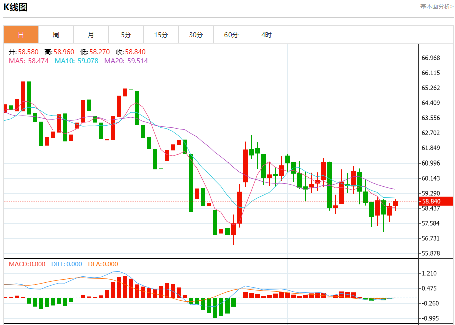 基本消息面 周四,国际原油市场情绪持续低迷,西德克萨斯中质原油(WTI)基本持平于58美元/桶关口,处于近一个月以来的低位区间。投资者对最新公布的美国能源信息署(IA)库存数据反应冷淡,反映出在多重利空因素交织下,市场观望情绪浓厚。 相关新闻消息 IA数据显示,截至11月22日当周,美国商业