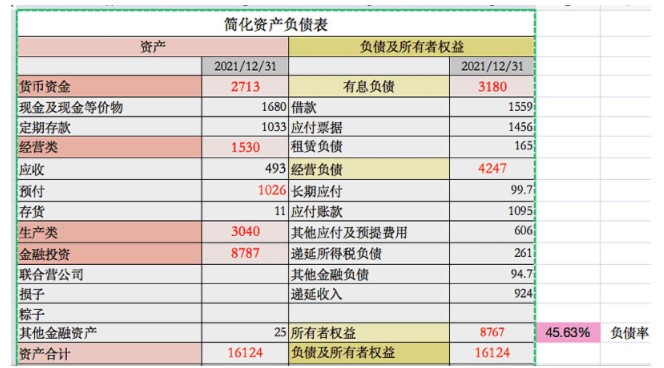 在财务方面,2021财政年度简化资产负债表: