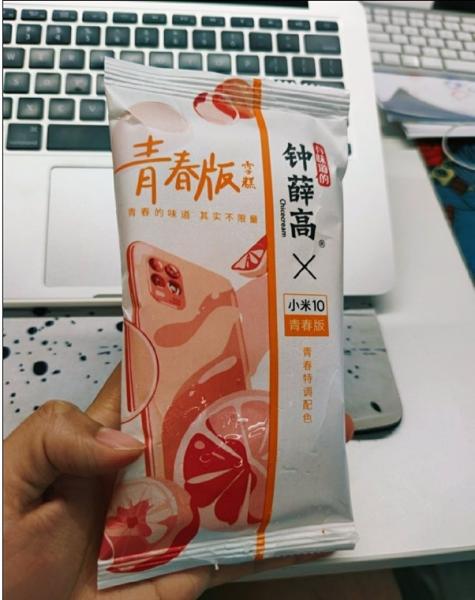 值得一提的是,2020年,钟薛高联合小米10青春版推出了一款名为“青春版雪糕”的新口味,同时还带来了小米10青春版×钟薛高联名礼盒。